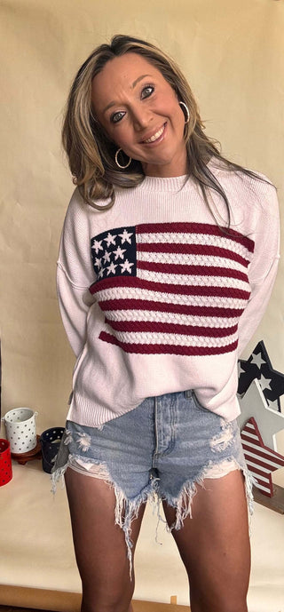 American Flag Drop Shoulder Sweater - Dear GigiS