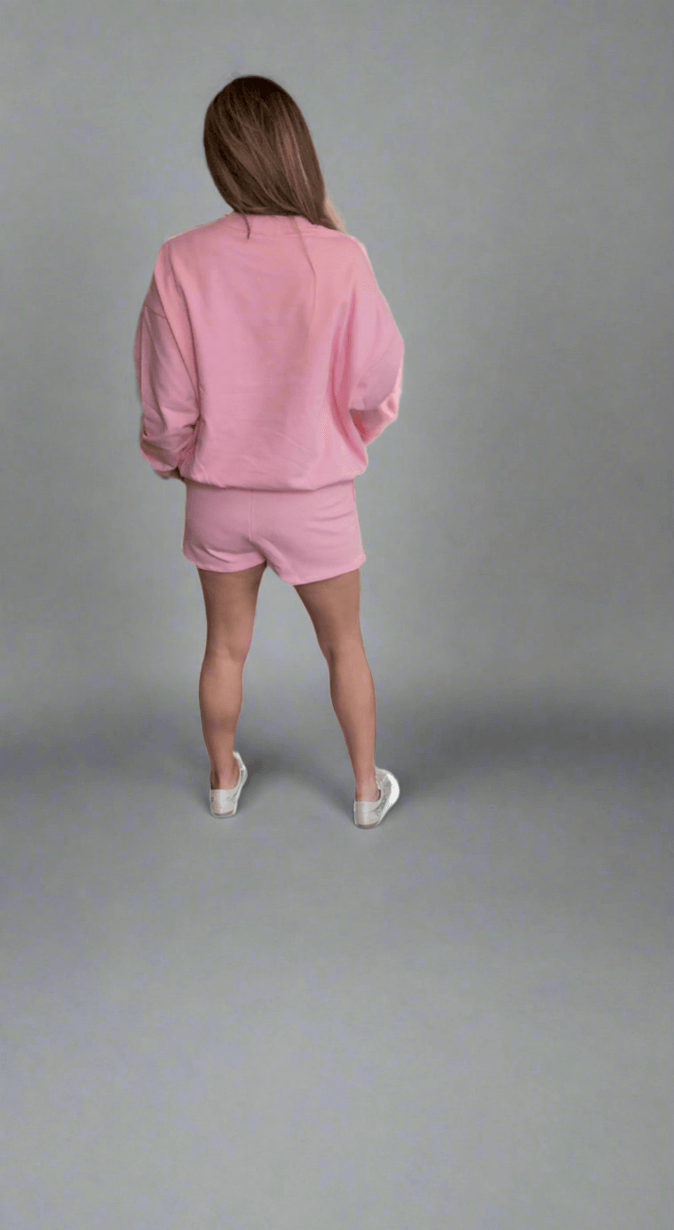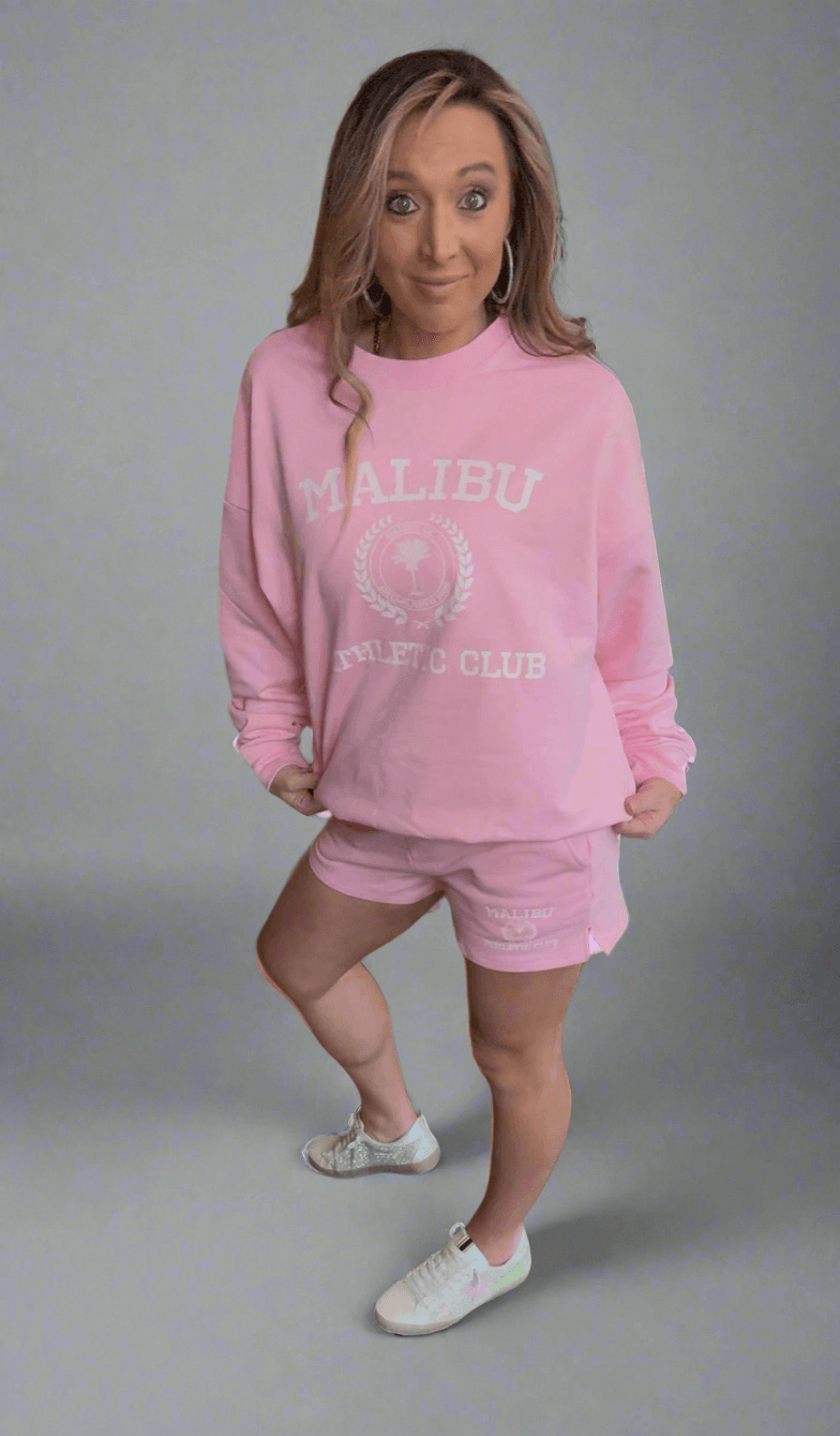 Upgrade your loungewear game with the Malibu Pink Set. This set includes a cozy pink sweatshirt and matching shorts for the perfect combination of comfort and style. Whether you're lounging at home or running errands, you'll feel both relaxed and fashionable with this set.