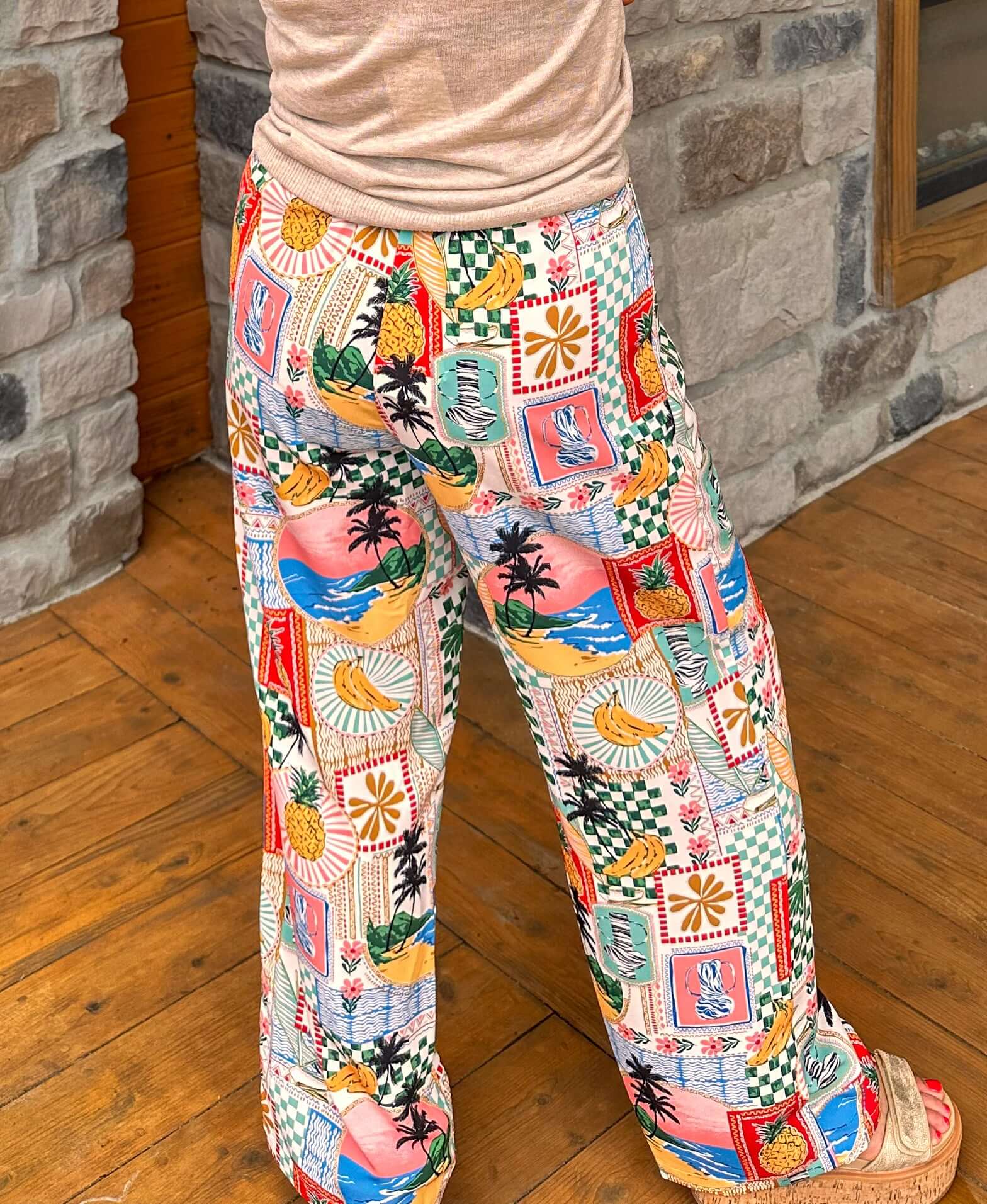 Meet The Sierra, lightweight, breezy summer pants featuring a soft tropical print and button fron closure (but elasticized in the back) waist—perfect for sun‑filled days. Crafted from a breathable woven cotton blend, these wide-leg pants are easy to style and machine washable (but be gentle) for effortless care. Combine comfort and seaside charm—pair them with your favorite tops for a carefree, polished look.