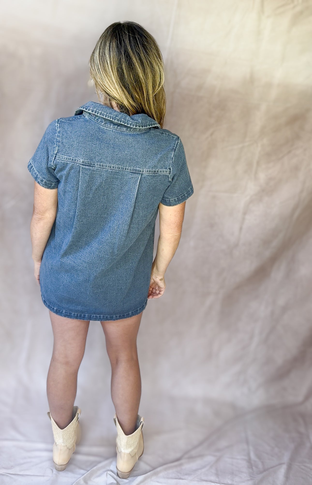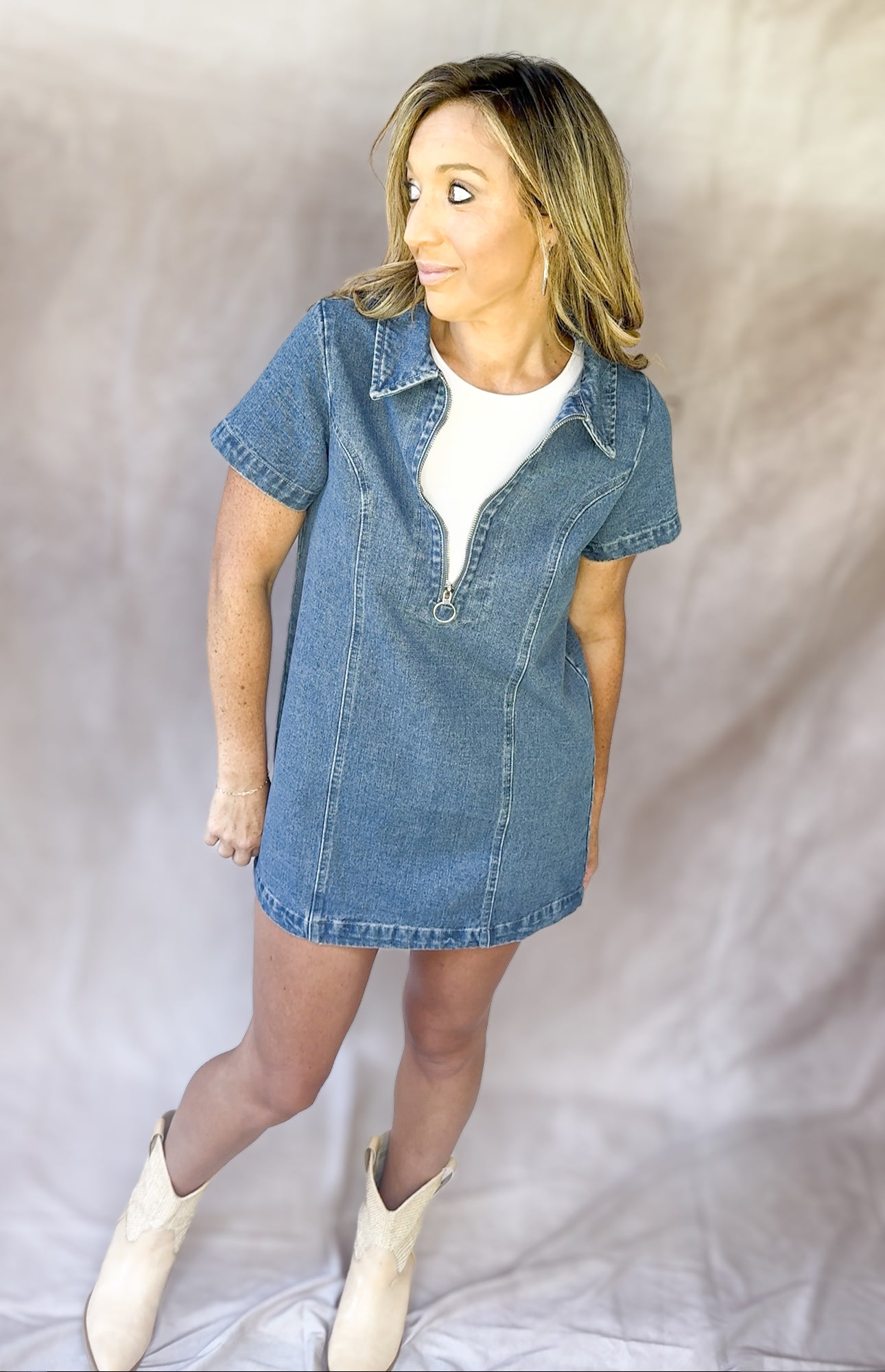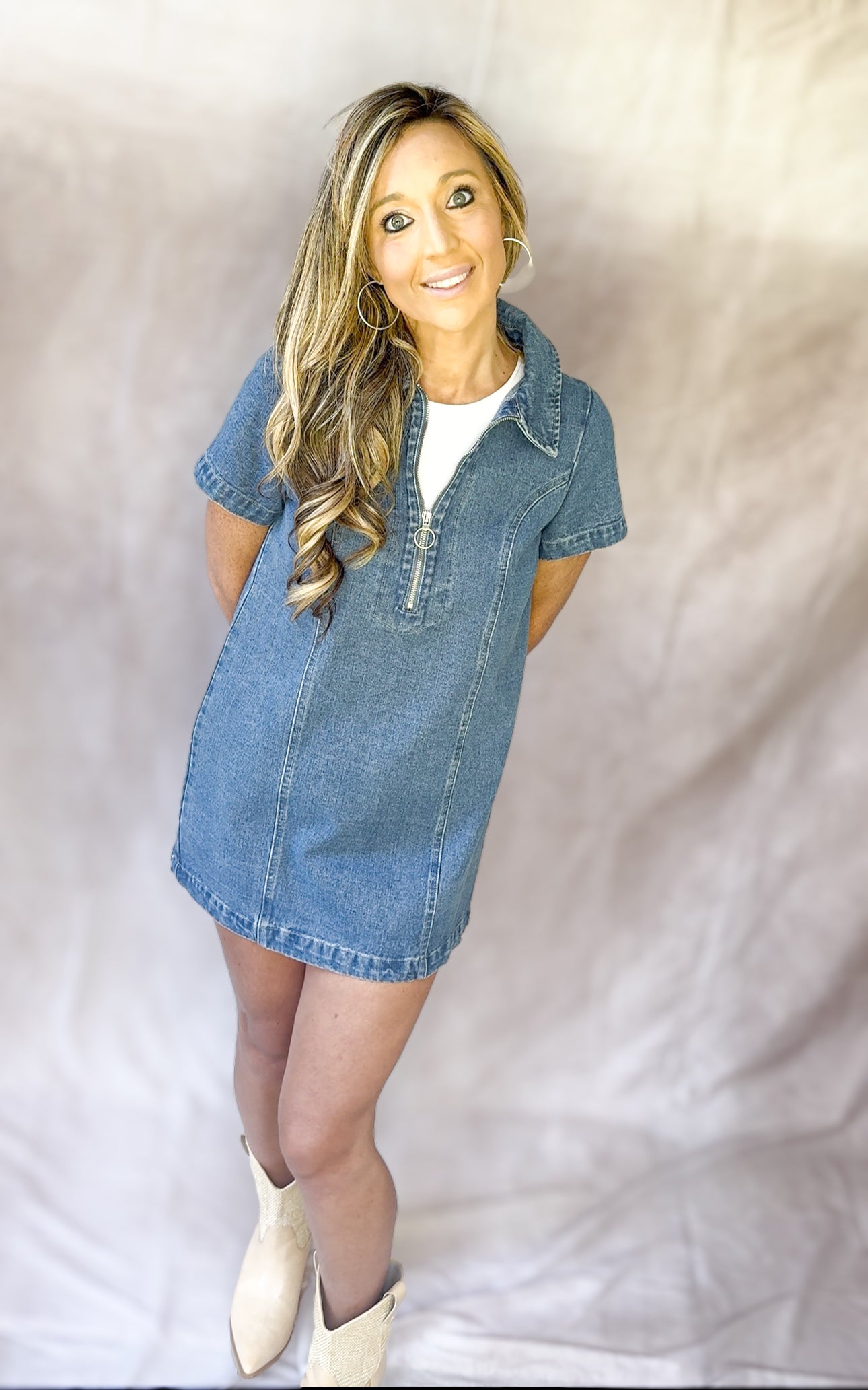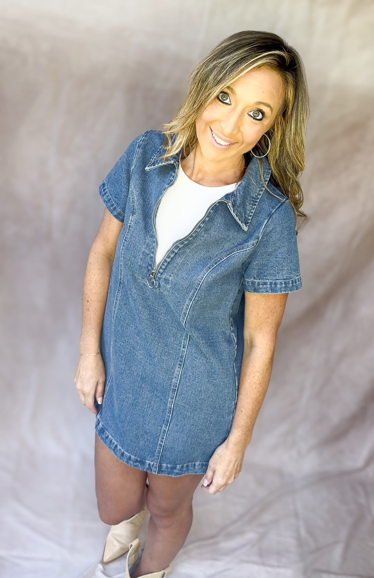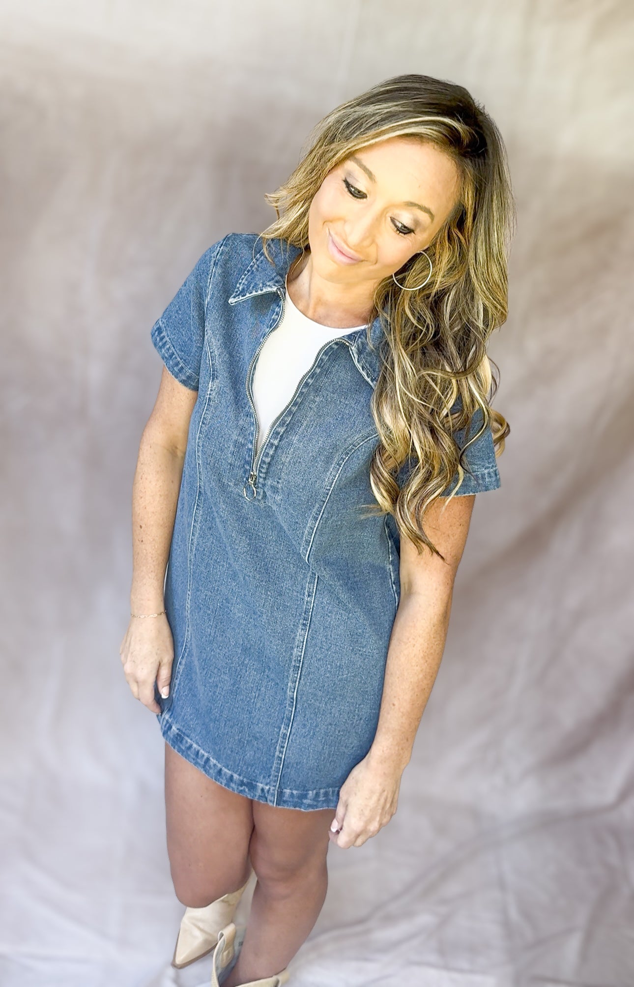 Washed Denim Zipped Mini Dress – Dear Gigi