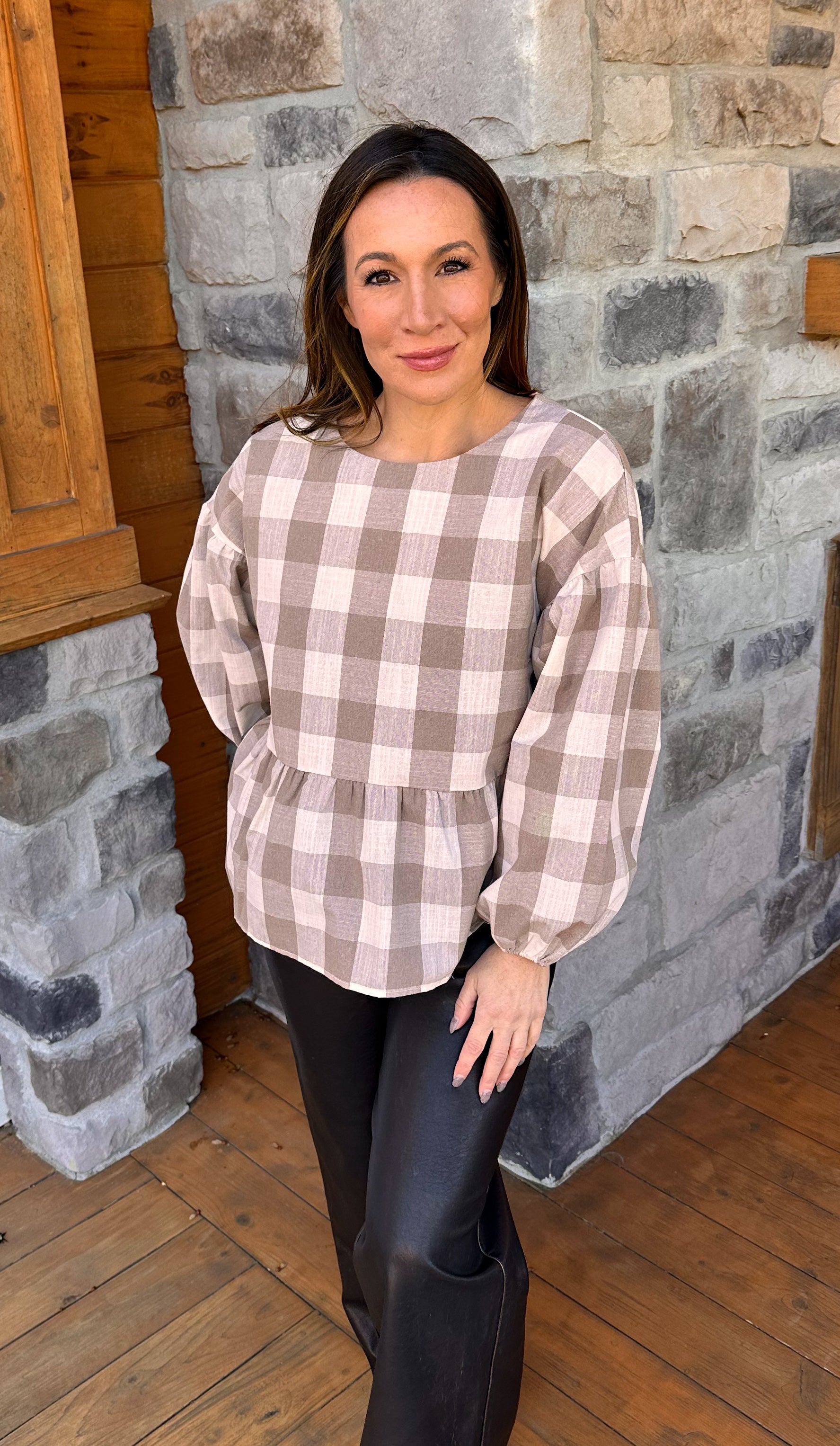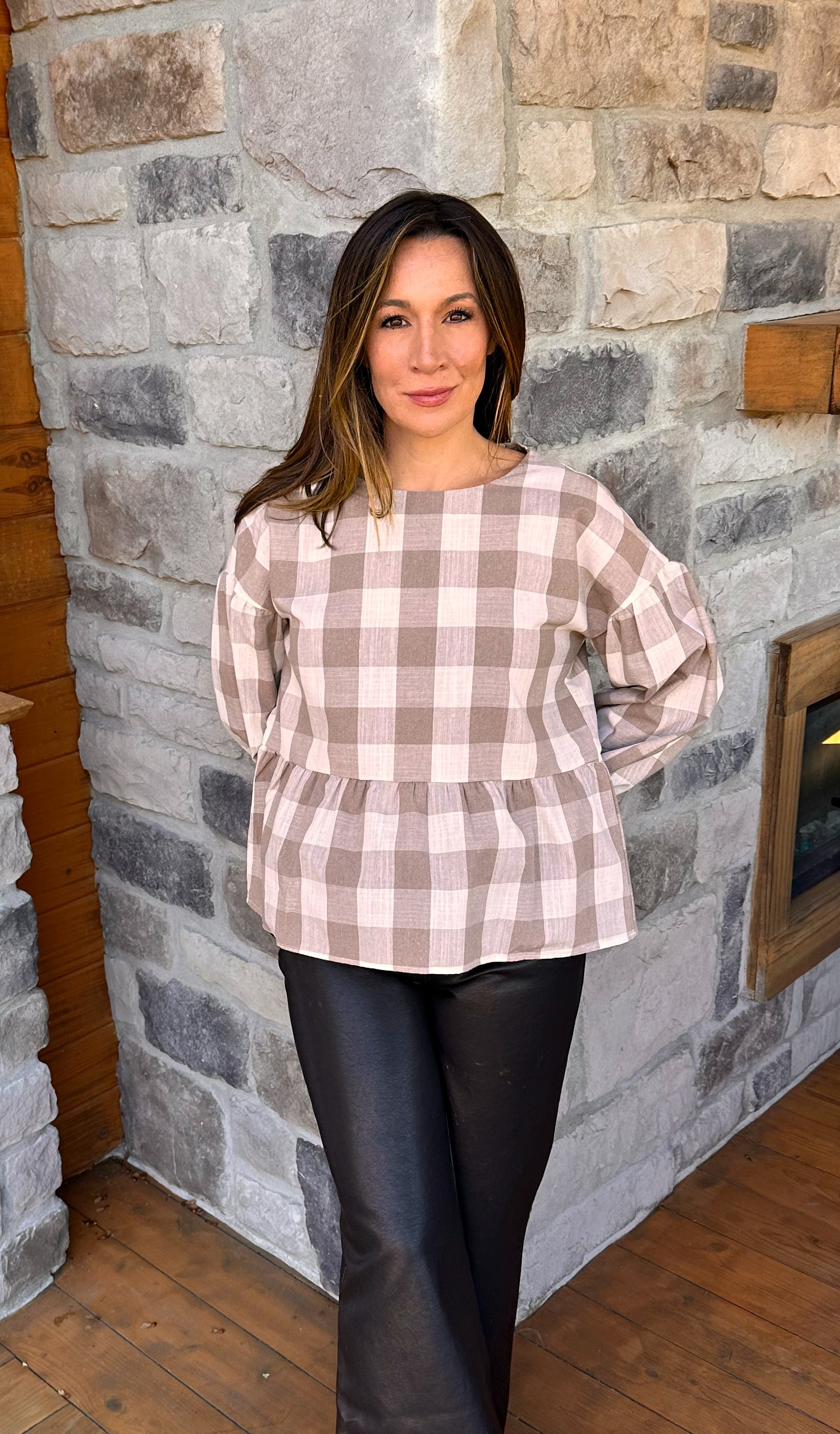 Peplum Tan Buffalo Check Blouse – Dear Gigi
