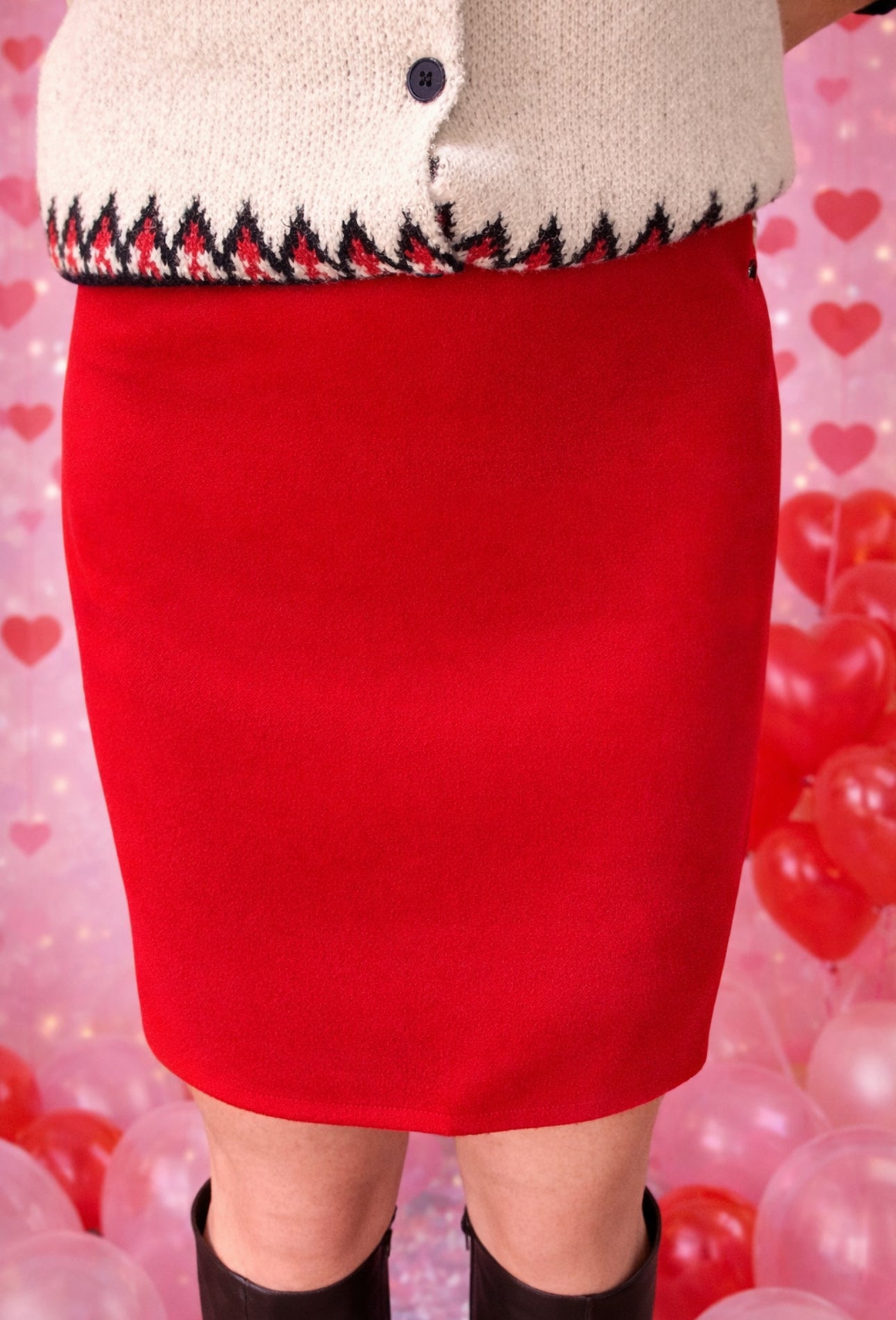 Radiant, graceful, and designed to shine. The Scarlet Skirt captures timeless femininity with a modern edge. Crafted from lustrous red, this skirt moves beautifully with every step, while flattering silhouette. Elegant yet versatile, it’s the piece that brings effortless sophistication to any occasion—from candlelit dinners to festive celebrations.