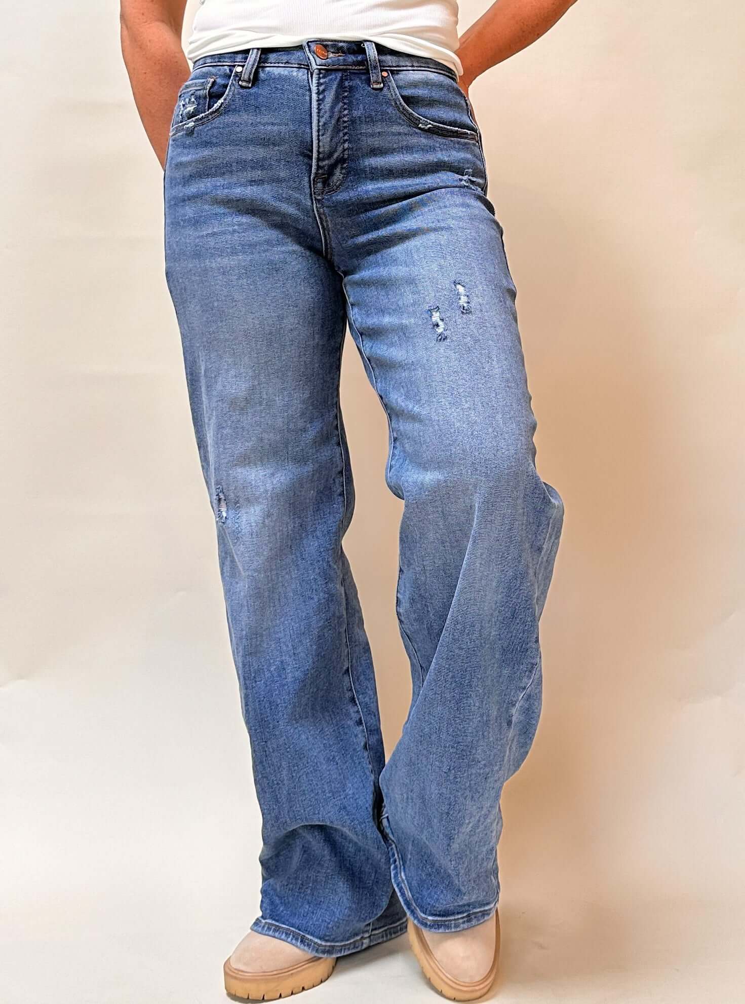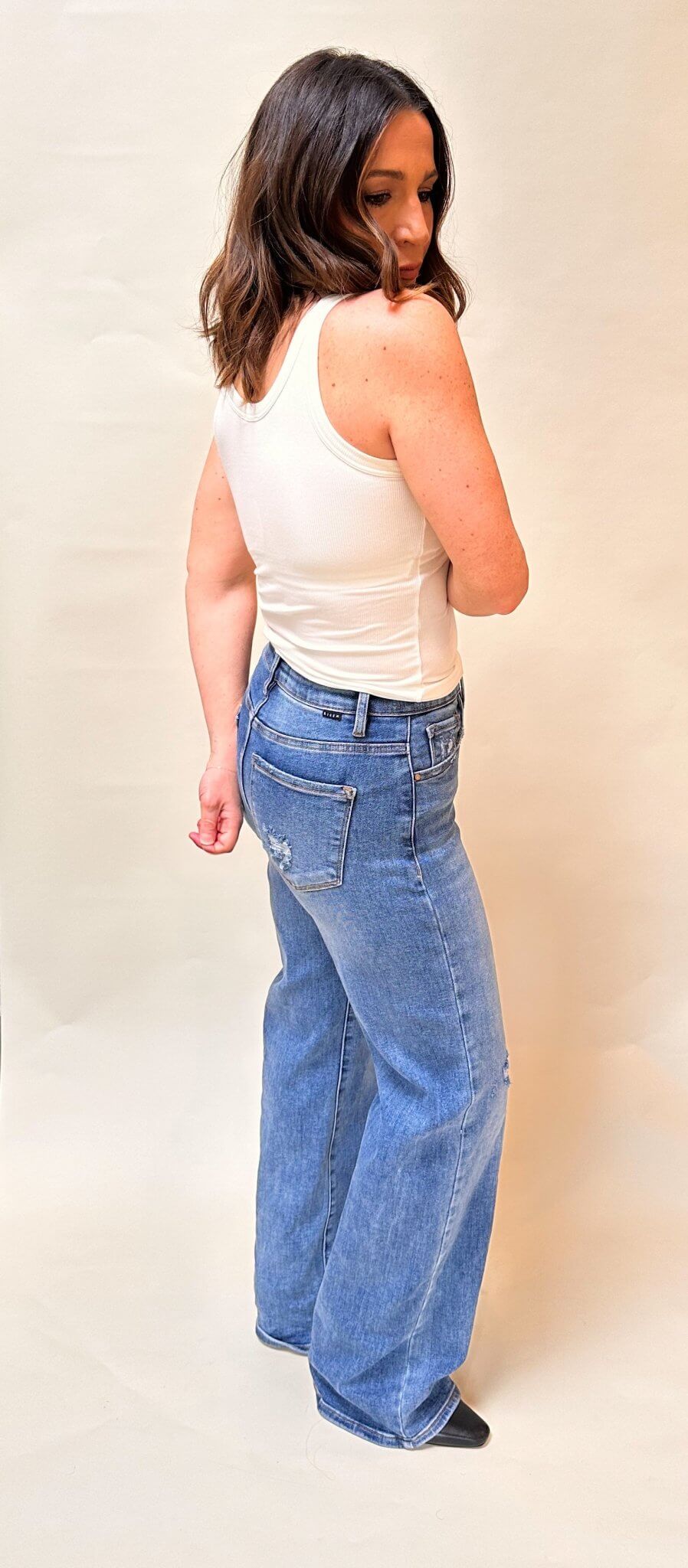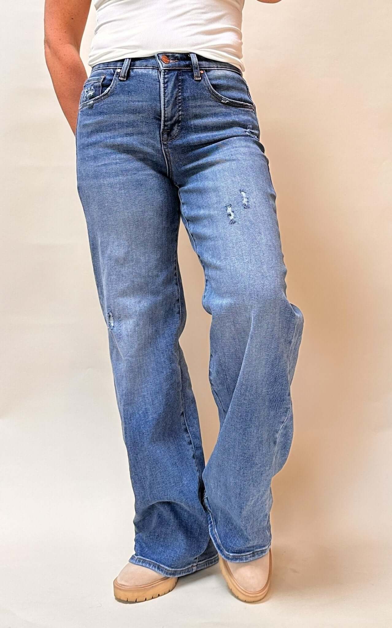 Elevate your casual style with our Jewel Denim, super soft wide-leg pants designed for maximum comfort. Featuring a button closure and tummy control fabrication, these medium wash pants offer a flattering fit that hugs you in all the right places. Running true to size, the Jewel Denim is perfect for creating chic, laid-back looks that can easily transition from day to night. Pair them with a stylish top or cozy sweater for a versatile outfit that stands out!
