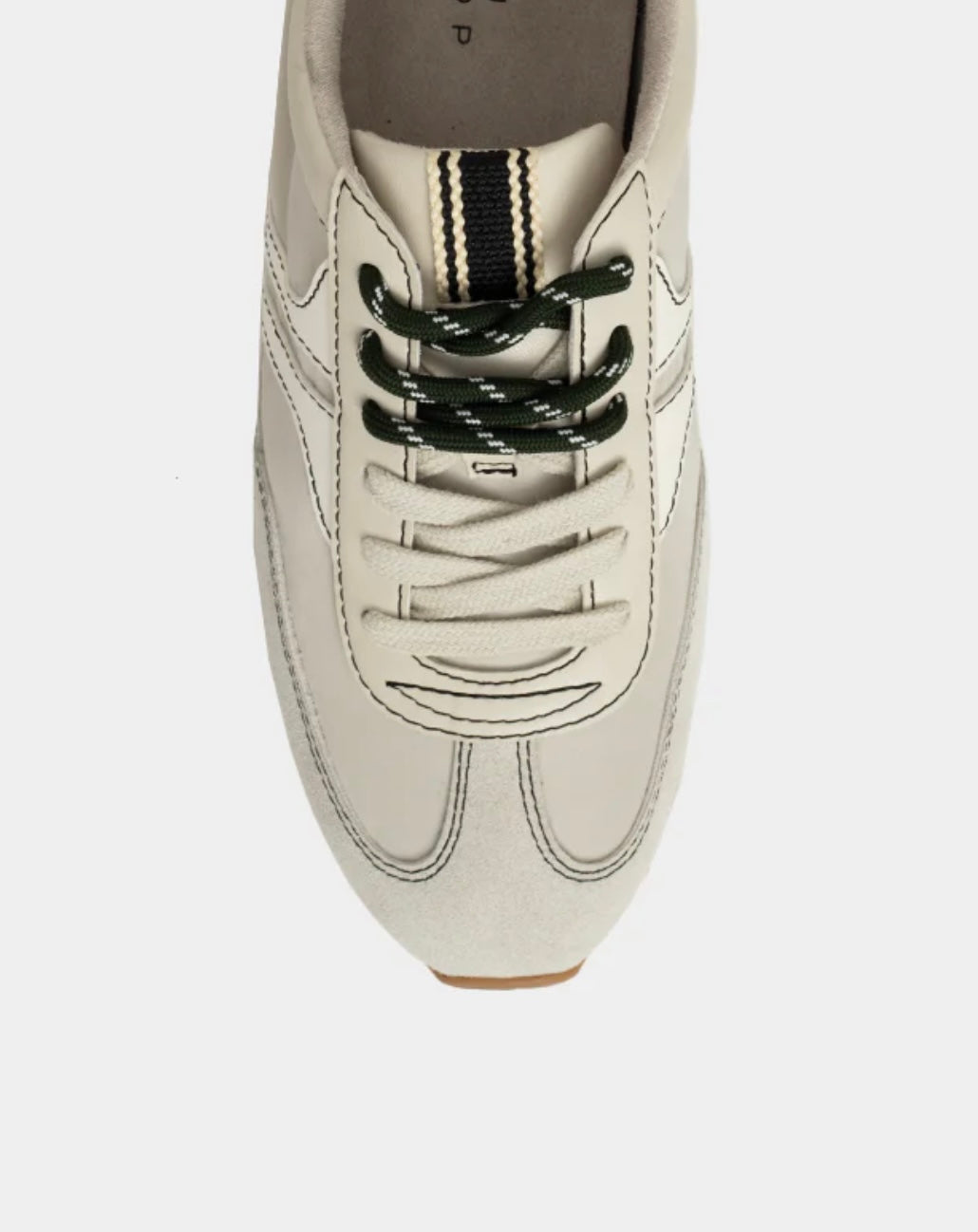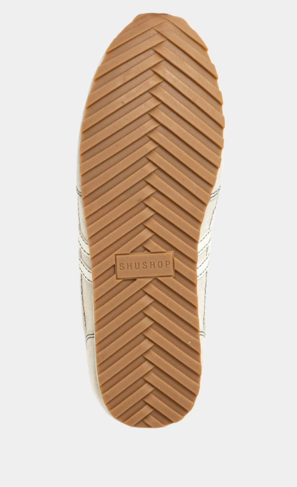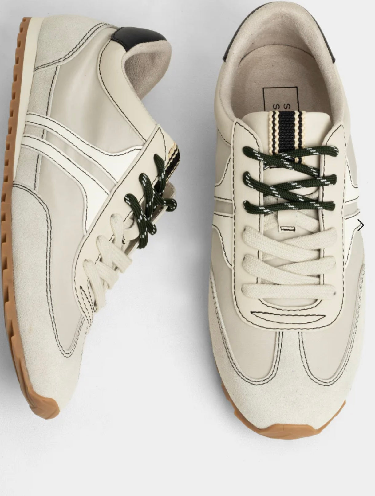 Minimal, effortless, and elevated. The SARAH in Bone is a sleek sneaker with a nostalgic touch. The neutral-toned upper is accented with contrast stitching and a black heel tab, giving it just enough edge to elevate your basics. Perfect for off-duty days, weekend errands, or casual Fridays at the office.