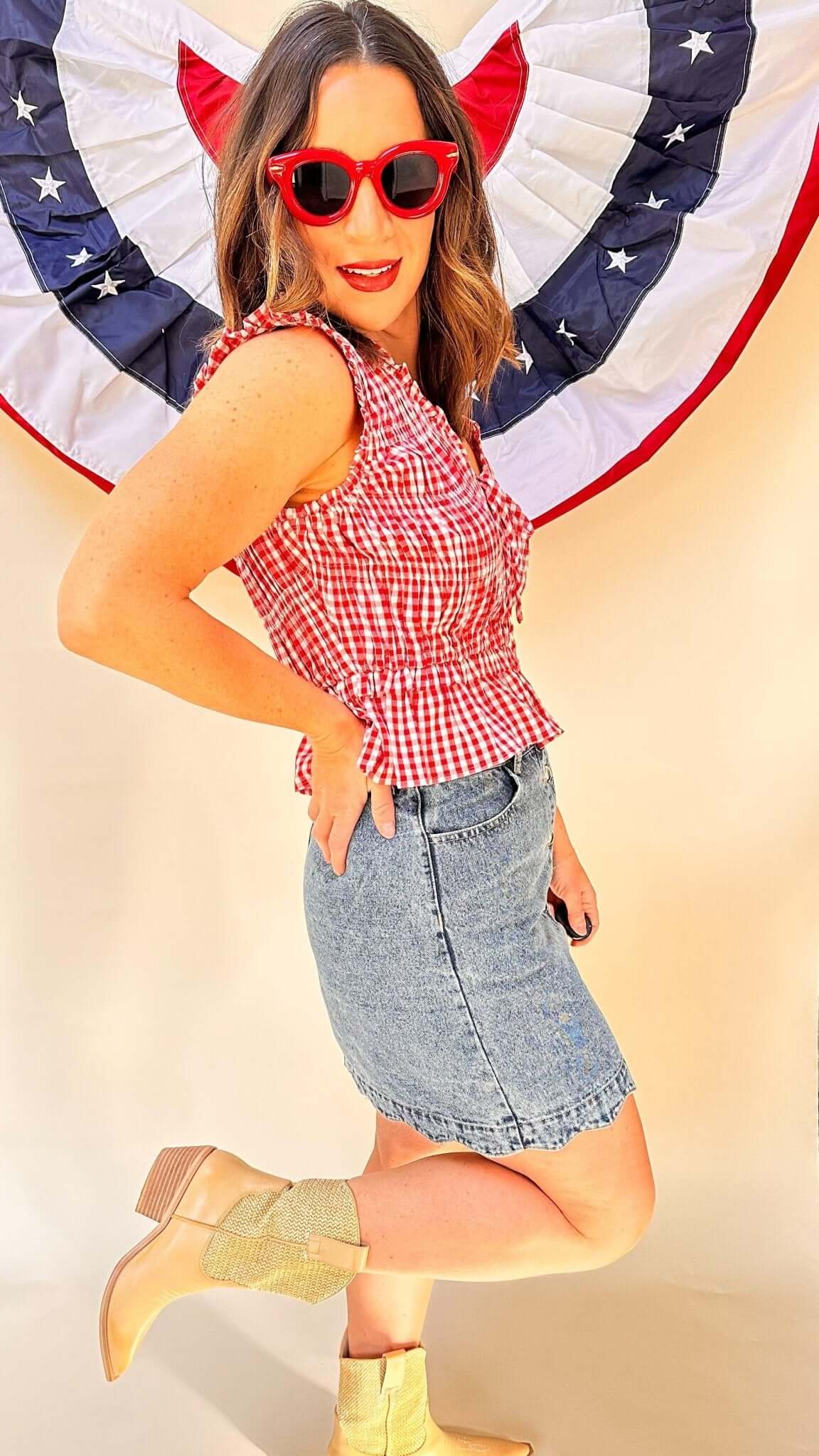 Pair it with our Scalloped Jean Skirt and Zahara summer boots for a perfect summer look.