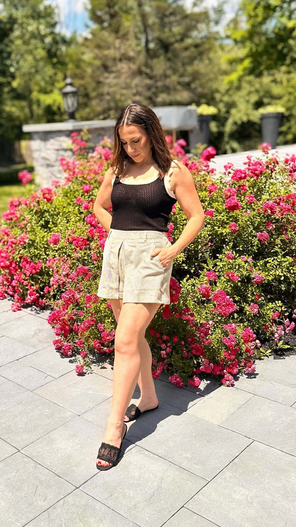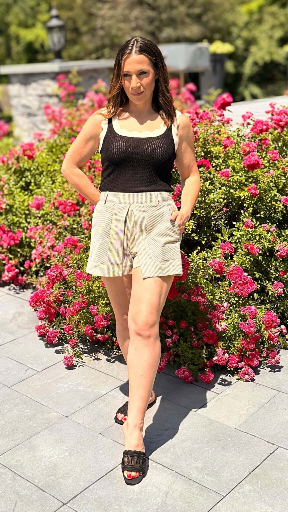 Introducing The Piper, a chic, pull-on skort featuring ivory and black railroad stripes, and a front cut-out for modern flair. With pockets, a relaxed belt, and elastic at the back waist, Piper offers effortless style and comfort in one. Lightweight and breezy, The Piper is perfect for sunny days and effortless transitions from day-to-night.