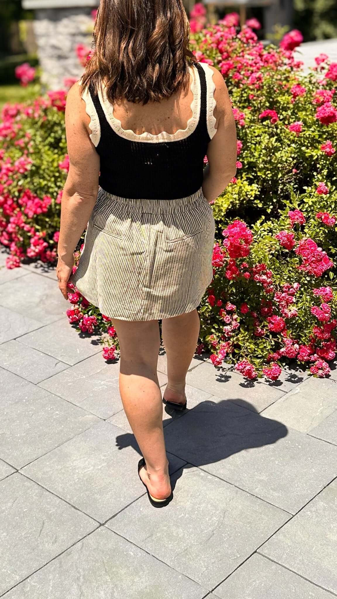 Piper – Ivory & Black Railroad Stripe Pull-On Skort