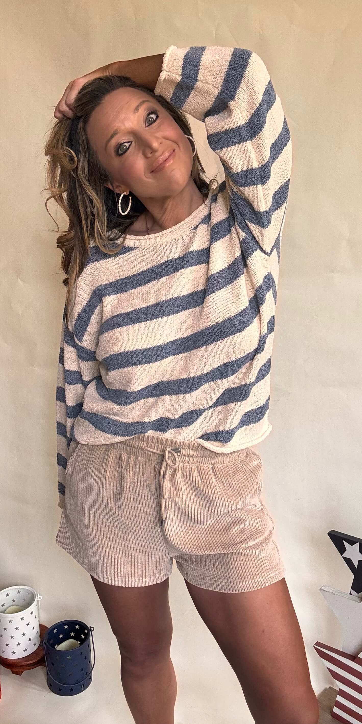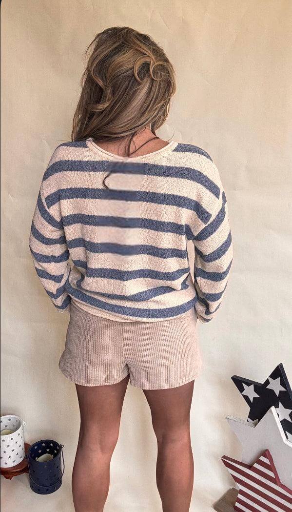 Sail into style with our Jane Boat Neck Striped Texture Knit Sweater. With a boat neck and textured knit design, this blue and ivory striped sweater will elevate your look. Perfect for cool weather, this sweater is both stylish and cozy. Get ready to sail away in style!